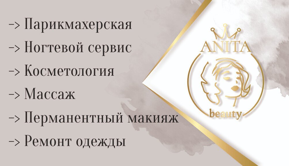 Вы из тех людей, кому кажется, что салоны красоты - причуда и ненужная трата денег? Посетите салон красоты Анита - и вы поймете, что это не так! Высокий профессионализм наших парикмахеров, косметологов, визажистов и мастеров ногтевого сервиса не только гарантирует вам исключительный уровень ухода, который недостижим в домашних условиях, но и позволит действительно преобразиться, найдя для себя новый стиль. В салонной атмосфере вы отдохнете душой и телом, испытав тот роскошный уровень заботы, которого вы, несомненно, достойны!